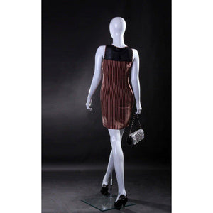 We love this mannequin over here at Mannequin Mall! This glossy egghead mannequin looks so confident like she's walking down the catwalk! This style pose is one of our customers' favorites, and she will look amazing in any type of clothing you put her in.