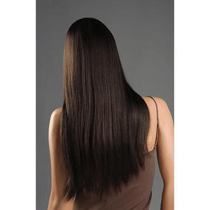One of the most beautiful brunette wigs that we have. This is a straight-haired wig and a long length. This female wig is quite stunning!