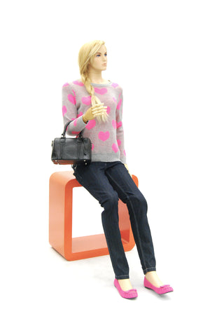 As you can see in the pictures, she has articulated joints in her hands, arms, head, and legs giving you flexibility in how you would like to position this mannequin.