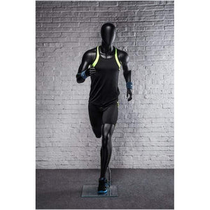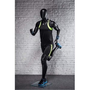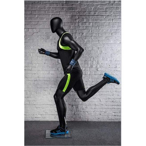 This is the athletic sports running mannequin you have been looking for. In one of the season's hottest colors, matte black, this male running mannequin will be the star of your store or display. Dress him up in any athletic gear, and he will look awesome.
