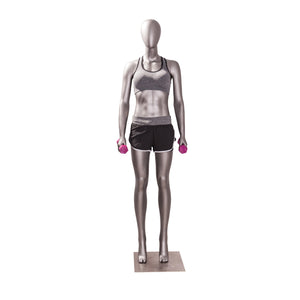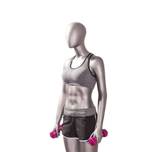The egghead style creates a blank canvas that will put more emphasis on what she is wearing. This athletic sports female mannequin also comes in one of the hottest colors requested by our customers - metallic matte gray.