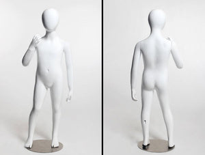 It has an eye-catching glossy white color that makes any kind of children's clothing look good. He/She can easily dress and undress since the arms and hands are detachable. This would be perfect for people who are looking for a simple child mannequin because of its pose and color.