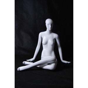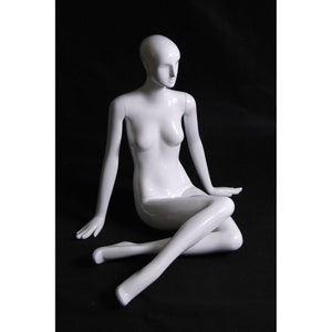 • This mannequin is just sitting down taking a break from modeling all day. Don't worry though. She is still in a beautiful pose that will make your clothes look amazing! She comes apart easily so that you can dress and undress her. If you need a sitting mannequin, this one will do!
