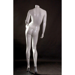 • If you're looking for a beautiful headless mannequin, the MM-RLISA4BW is a great one to choose. She comes in a glossy white finish. She stands with one hand on her hip and her hips to the side. Her pose exudes a sexiness and allure about her. This headless female mannequin is a wonderful choice!
