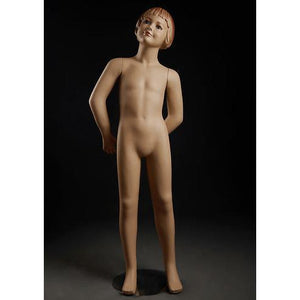 How adorable is this young girl mannequin? She is so cute with her hands behind her back in her innocent and young pose. She is growing up so fast! This young girl mannequin has molded hair so there is no need for a wig. She is a realistic girl mannequin that will look so beautiful in your store modeling young females' clothing.
