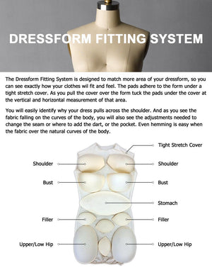 • Different people can have different body shapes and sizes--a "one-size-fits-all" approach will not do. It's always better to adjust clothing according to someone's size for an accurate fit. In this regard, our Dress Form Fitting System can be of value. This innovative fitting system helps you make changes to your dress form via pads for the best possible fit.